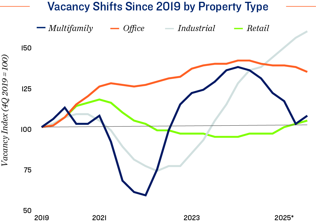 - On the other hand, many other markets have welcomed minimal development for several years, aiding vacancy.